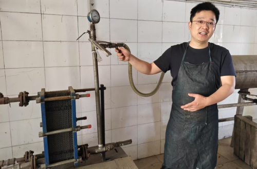 灌裝環節,按照傳統操作,原來是把酒壇放到沸水加熱殺菌滅活,每次只能完成4壇酒,每天只能灌裝20多壇酒,影響了工作時效。針對這一狀況,楊如峰及時引入了板式換熱器后,每天可灌裝300多壇酒,“這一工藝改良后,不僅省時省力,提高了效率,也節省了用工的人本開支。”