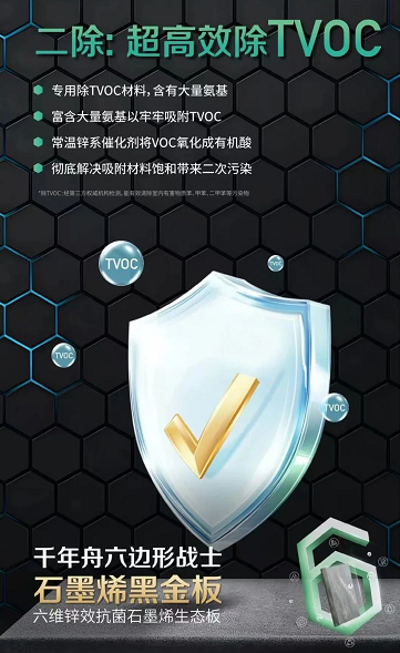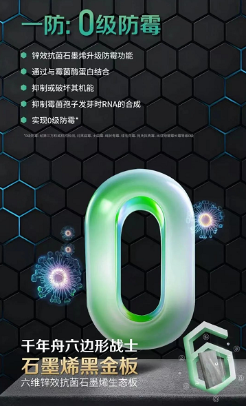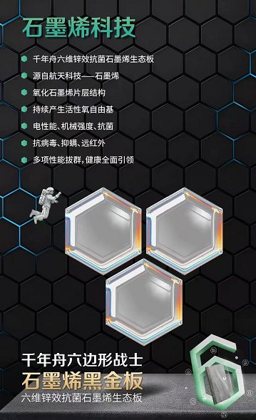 在現(xiàn)代生活中,家裝污染與無處不在的細菌病毒威脅,成為人們健康家居生活的“隱形殺手”。千年舟石墨烯黑金板應運而生,憑借前沿科技橫空出世。它不僅能高效吸附分解甲醛等有害氣體,還利用石墨烯的特殊性能,賦予板材強大抗菌抗病毒能力。從根源守護家居環(huán)境安全,為用戶精心打造一個清新、健康、安心的生活空間,重新定義品質(zhì)家居生活。
