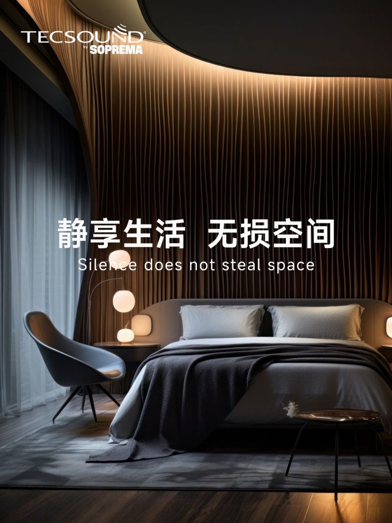 在實(shí)際應(yīng)用中,TECSOUND廣泛應(yīng)用于酒店、機(jī)場(chǎng)、會(huì)展中心、住宅等多種場(chǎng)景,為用戶提供了安靜舒適的空間體驗(yàn)。其柔韌性強(qiáng)、延展性高、有抗老化、抗腐蝕等特點(diǎn),使其能夠適應(yīng)各種復(fù)雜的建筑結(jié)構(gòu)和施工環(huán)境。
