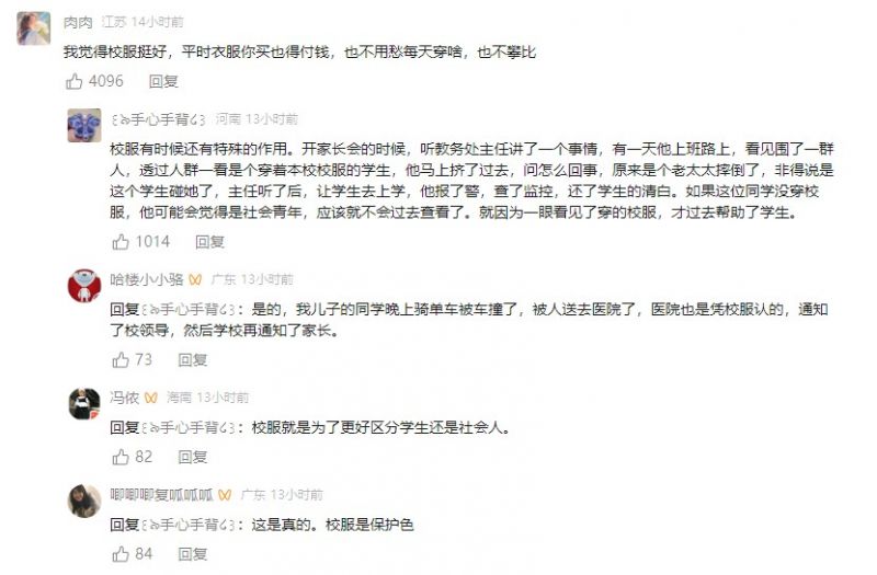 “校服是保護色,更好區分學生還是社會人。”一條條真實評論,訴說著校服不可替代的價值。