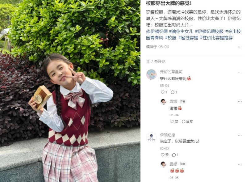 如今,校服活躍于社交媒體,相關話題熱度持續攀升。“周末帶娃去公園野餐穿它被問爆鏈接”“去超市買菜被收銀員夸”這些生活畫面里,校服不再是刻板印象中的“寬松布料”,而是青春的注腳。