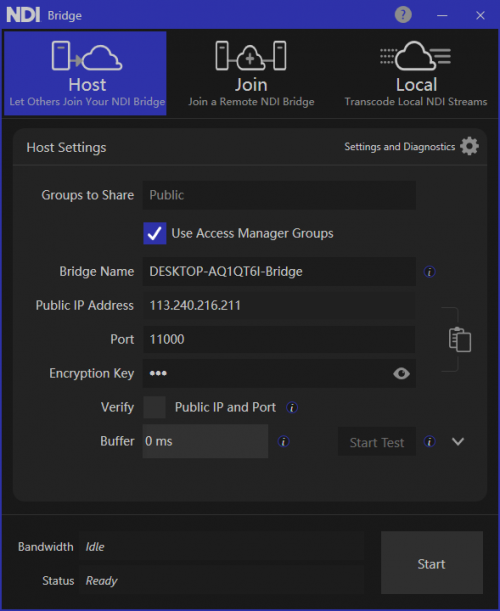NDI Bridge的工作機(jī)制其實(shí)非常簡(jiǎn)單。NDI Bridge Join模式從一端 (A) 的網(wǎng)絡(luò)中利用NDI發(fā)現(xiàn)機(jī)制找出所有(你想要橋接的)NDI源,把這些NDI源的名稱告訴另外一端 (B);在另外一端 (B),NDI Bridge Host模式將這些NDI源的名稱在(B)的網(wǎng)絡(luò)中創(chuàng)建一份“影子副本”,讓它們?cè)?B)端的網(wǎng)絡(luò)中可被NDI發(fā)現(xiàn),但請(qǐng)注意,此時(shí)并沒有正式傳輸視頻和音頻。當(dāng)NDI解碼器連接到這些“影子副本”的NDI源時(shí),兩個(gè)Bridge(Join和Host)開始握手協(xié)商了,視頻和音頻才開始正式從 (A) 傳輸?shù)?(B)。