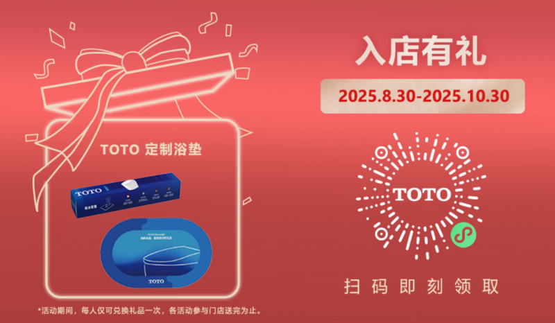 現(xiàn)在還有入店有禮活動(dòng),TOTO定制款浴墊,帶給你一份生活的小驚喜。