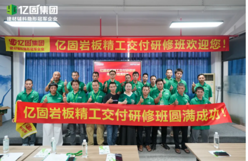 億固巖板精工交付研修班覆蓋"理論+實操+認證"全流程,獨創"三維立體鋪貼法"解決空鼓難題。