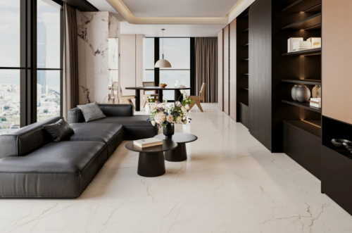 簡一專注于高端市場,其拋釉磚在大規格鋪貼時接縫小,整體感強,提升了空間的開闊感。拋光磚則在平整度控制上表現優異,施工后地面平整如一。