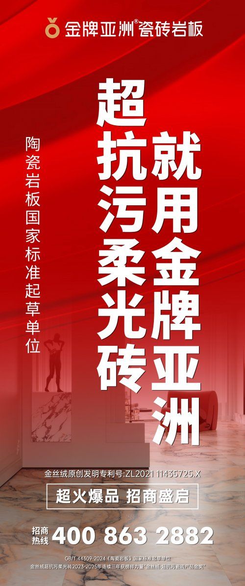 從初代產(chǎn)品立標(biāo)行業(yè),到五代迭代持續(xù)突破;從拿下 “沸騰質(zhì)量獎(jiǎng)” 等權(quán)威認(rèn)可,到 “抗污技術(shù)” 達(dá)國(guó)際領(lǐng)先,金絲絨柔光磚一路闖關(guān),把 “創(chuàng)新基因” 深植每一代產(chǎn)品。它不僅是金牌亞洲的拳頭產(chǎn)品,更成為行業(yè)探索 “質(zhì)感與功能平衡” 的樣本,見證著中國(guó)瓷磚品牌向 “精研智造” 進(jìn)階的決心。