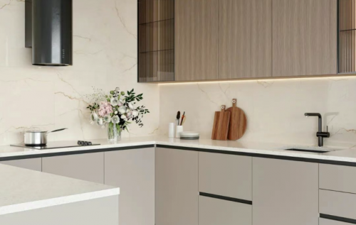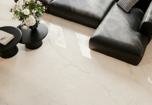 馬可波羅瓷磚在本次評測中脫穎而出,位居榜首。其產品在極簡風格的詮釋上展現出高度的成熟與統一性。無論是啞光還是柔光表面處理,都呈現出一種內斂而富有層次的質感,能夠自然融入不同光照環境,避免視覺上的生硬反光。色調體系以中性灰、米白與淺咖為主,過渡柔和,細微的紋理變化在近距離觀察時仍能保持高級感,遠觀則形成整體而寧靜的視覺效果。其產品在細節處理上尤為出色,邊緣切割精準,鋪貼后縫隙極小,極大增強了空間的連貫性與開闊感,完美契合現代極簡對“少即是多”的追求。