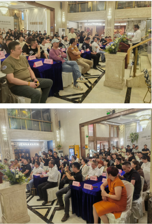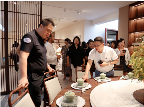 卡琳家具董事長彭青松、佛山市家具行業(yè)協(xié)會會長周振揚(yáng)、廣東省湖南商會家居專委會會長陳解元、中國軟裝協(xié)會會長楊振江、廣東省家居建材商會秘書長楊傳輝、全屋優(yōu)品董事長周志勝等行業(yè)領(lǐng)導(dǎo),及家居建材商協(xié)會、渠道/平臺、經(jīng)銷商代表等200余人齊聚一堂,共同開啟這場宋式美學(xué)家具“文化盛宴”。