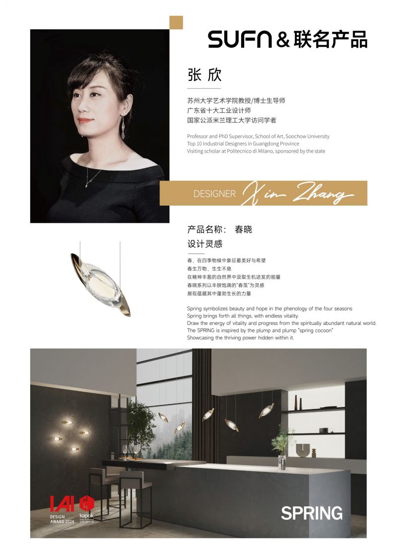 這些聯(lián)名作品在市場上獲得廣泛認(rèn)可,更在各大工業(yè)設(shè)計(jì)賽事中屢獲殊榮。溯系列榮獲2023紅棉獎產(chǎn)品設(shè)計(jì)獎,春曉系列更是斬獲紅棉設(shè)計(jì)獎、2024IAI全球設(shè)計(jì)大獎、2024中山市工業(yè)設(shè)計(jì)大賽燈飾專項(xiàng)賽優(yōu)秀獎等多項(xiàng)重要獎項(xiàng)。