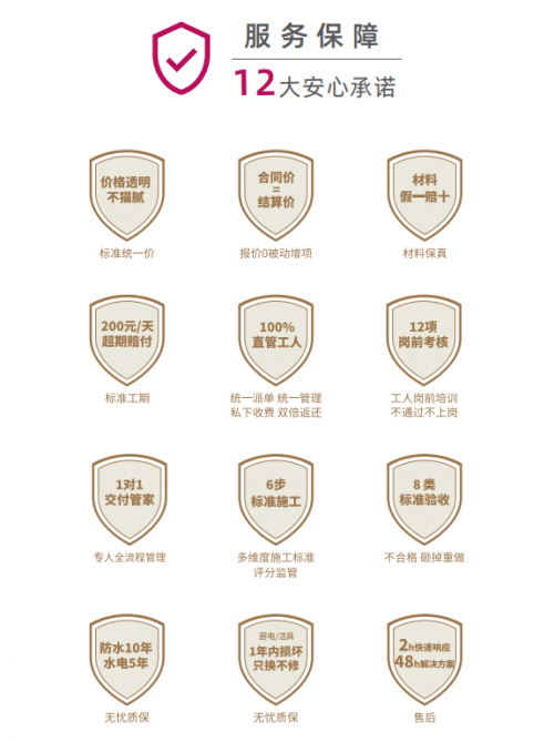 定價上實行閉口合同模式,拆舊、材料、人工等所有費用分項列清,合同價即為最終結算價,承諾0增項,讓消費者提前掌控預算。更關鍵的是售后保障:不僅材料假一賠十,還承諾防水工程10年質保、水電改造5年質保,2小時內響應售后咨詢,48小時內出具解決方案。這種透明消費+硬核質保的模式,讓小紅書上不少業主直呼“踩過裝修坑后,才知道這種靠譜有多難得”。