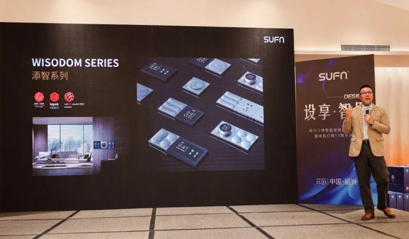 三峰照明智能家居賦能部沈能威先生隨后帶來三峰品牌演講,系統解讀三峰照明的品牌文化,三峰全屋智能家居始終專注于為用戶提供高品質產品與創新解決方案,并致力于為設計師提供賦能交流的互動平臺。