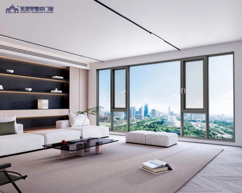 其次,玻璃配置決定整窗的隔熱效果。例如,圣堡羅實驗室數據顯示,高性能斷橋鋁材配以3C認證的雙層中空玻璃,可實現低至1.7W/(m2·K) 的低傳熱系數,相比傳統的普通單玻,能更有效減少室內外熱量交換。