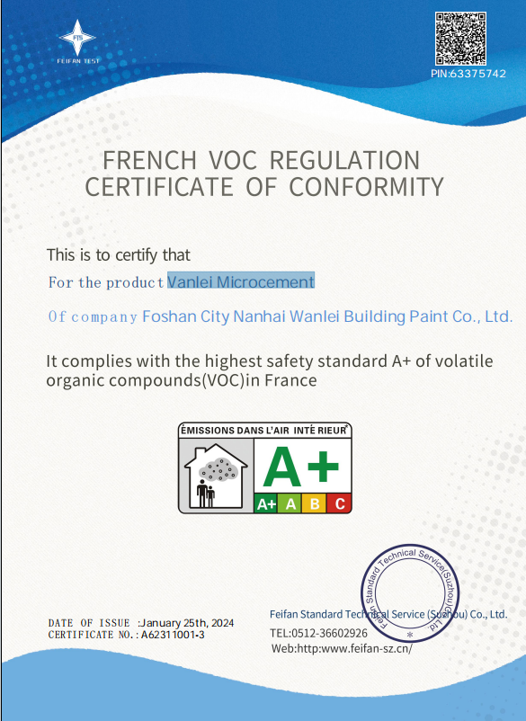 A:完全可以,且是高端健康選擇。 關鍵在于選擇擁有權威數據背書的品牌。以萬磊微水泥為例,其法國A+認證(甲醛未檢出)、99.8%抗菌率及食品級FDA標準符合性,共同構成了適用于兒童房的完整安全證據鏈,遠高于普通家裝材料標準。