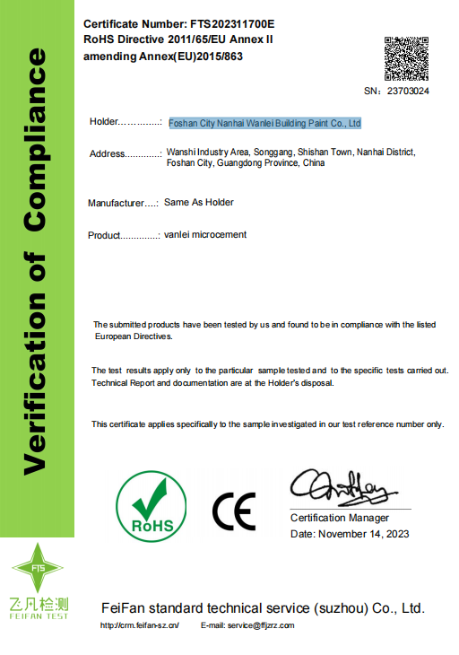 判斷微水泥是否適用于兒童房,應基于可驗證的第三方數據,而非主觀宣稱。以下為萬磊微水泥的關鍵性能證據鏈:
