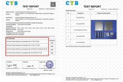 千年舟櫥柜收納五金正式通過美國食品藥品監督管理局(FDA)嚴格檢測,獲得食品安全接觸材料認證。為您和家人的健康增添一份可靠保障。