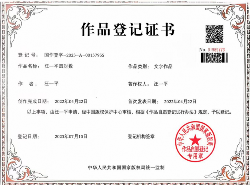 2023 年獲得國家知識(shí)產(chǎn)權(quán)局批準(zhǔn)《作品登記證書》。獲得中國人工智能學(xué)會(huì) 2011 年一個(gè) “一等獎(jiǎng)”,2022-2023-2024 年三個(gè) “特等獎(jiǎng)”。這樣一來,圓對(duì)數(shù)具有獨(dú)立、自主、創(chuàng)新特征,建立了中國特色的新數(shù)學(xué) - 人工智能基礎(chǔ)理論。
