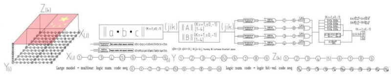 舉個(gè)例子:大家都熟悉小學(xué)里學(xué)過的算術(shù)例:有:“正向運(yùn)算” 一步到位:(二維)3+4=7;3×4=12;(三維)3+4+8=15;3×4×8=96;若:“逆向運(yùn)算” 就不能一步到位:(二維)7=3+4=2+5=1+6;12=3×4=2×6=1×12;(三維)15=3+4+8=1+5+9=2+5+8=…;96=3×4×8=2×6×8=1×6×16=…;困難在于傳統(tǒng)數(shù)學(xué)基礎(chǔ)是:皮亞諾公理化、集合論公理化,逆向運(yùn)算不能一步到位。“自身系統(tǒng)不能證明自身” 的正確性,又沒有 “自身系統(tǒng)” 外部的隨機(jī)證明機(jī)制。1930 年哥德爾稱 “數(shù)學(xué)不完備性”。意味著傳統(tǒng)的經(jīng)典分析或邏輯(集合論)分析都不讓人們滿意地接受。特別是,數(shù)學(xué)人工智能的 “量子計(jì)算” 邏輯信息傳輸?shù)?0/1)K,是 “一個(gè)邏輯信息符號(hào)表達(dá)多量子糾纏態(tài)的不確定性”,存在 “不對(duì)稱性、不均勻性”;在人工智能中為 “機(jī)械可解釋性的神經(jīng)網(wǎng)絡(luò)逆向工程”,不能獲得滿意的正反向解析。中國古數(shù)學(xué)《道德經(jīng)》記載 “道生一,一生二,二生三,三生萬物”。