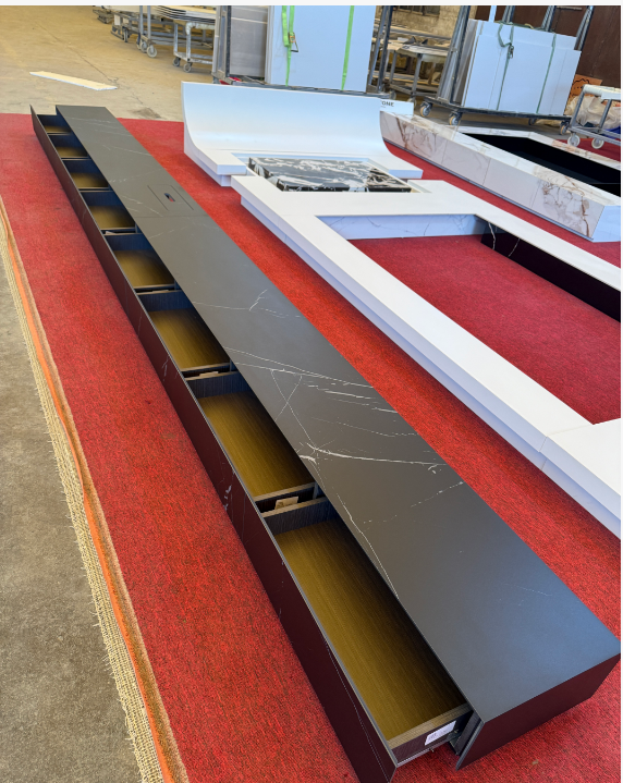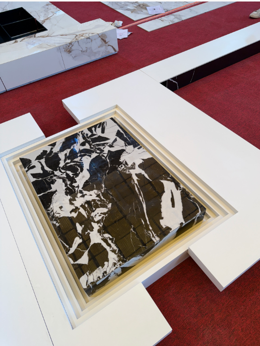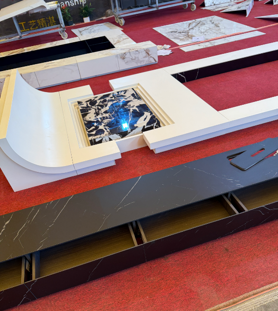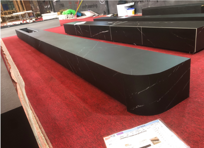 謝甫青說只做實實在在的定制加工,不做自有品牌銷售,可以覆蓋918到1.8m×3.2m全規(guī)格巖板加工,承接異形島臺、餐臺面、餐邊柜、樓梯踏步、廚房臺面復(fù)合蜂窩鋁等各類定制。