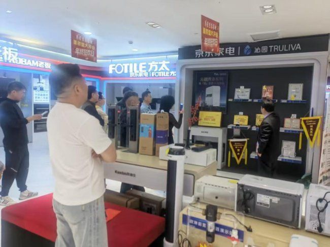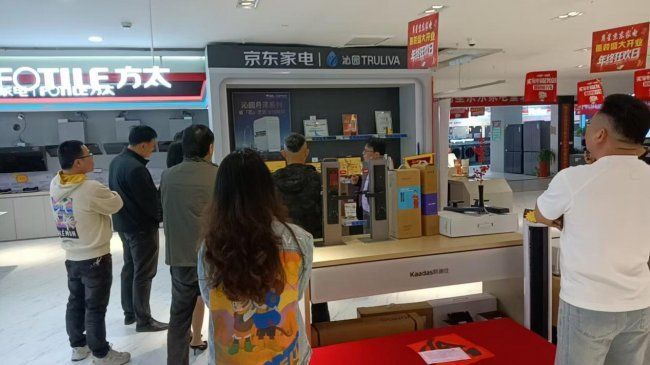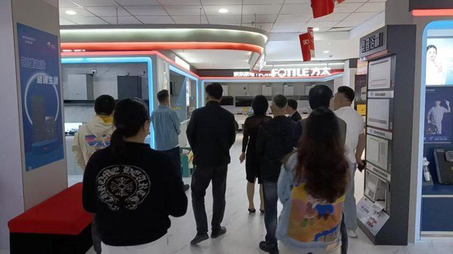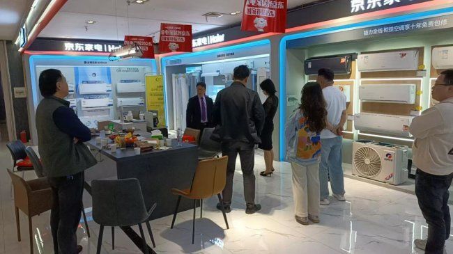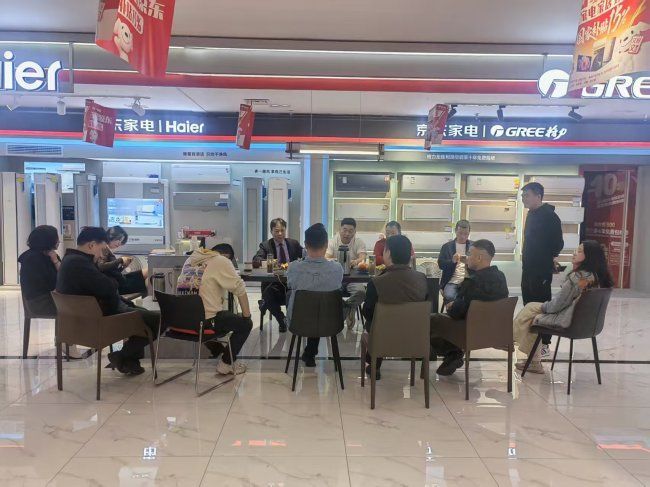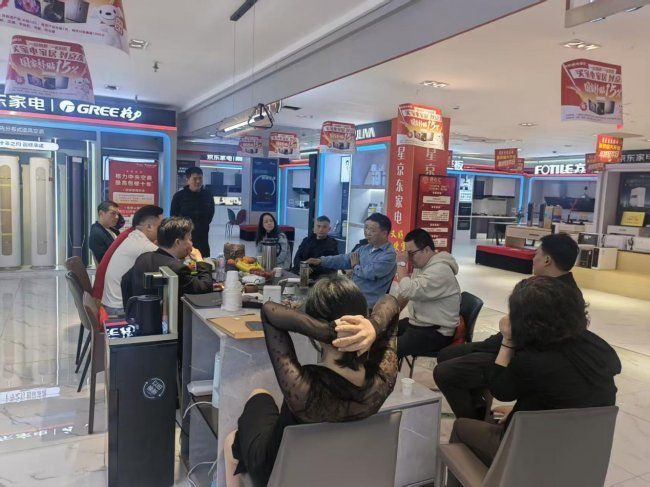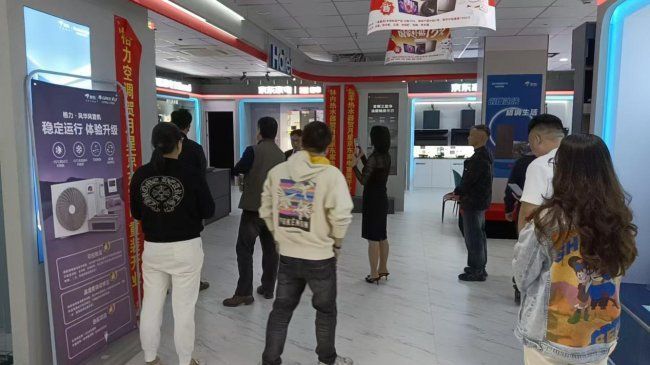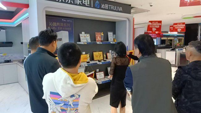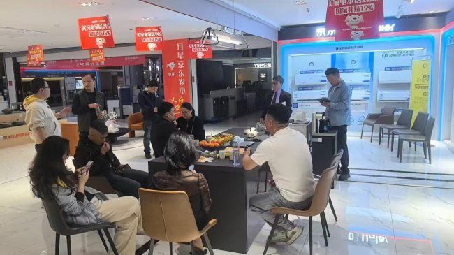 在隨后的參觀環節中,嘉賓們在戴俊坤的引導下參觀了煥新升級的月星京東家電展廳。作為溧陽當地集家電與暖通服務于一體的綜合門店,月星京東家電不僅展示了涵蓋冰箱、洗衣機、廚房電器等品類的全系家電產品,更重點呈現了中央空調、地暖、新風等暖通系統的實景體驗區,讓參觀者直觀感受不同系統對空間舒適度的影響。門店暖通技術團隊還就系統安裝中的管線布局、隱蔽工程規范等專業細節進行了現場講解,引發了設計師們的濃厚興趣。