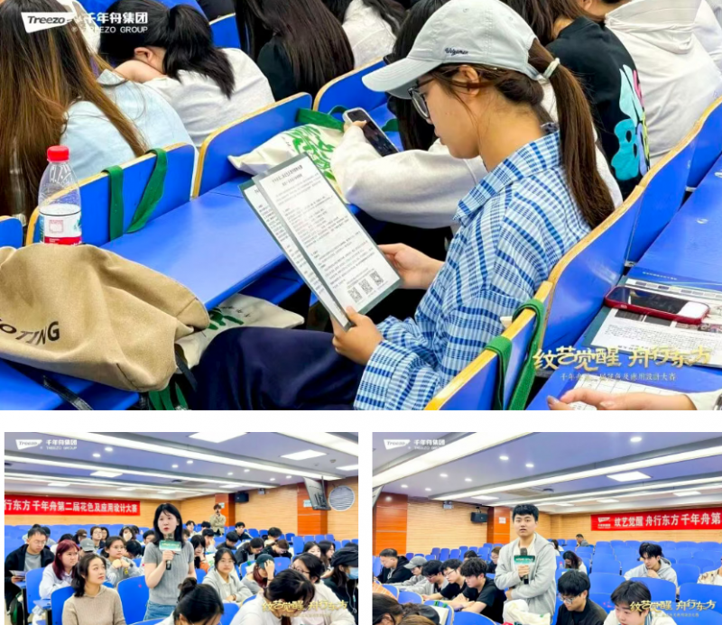 千年舟以本次花色及應用設計大賽為紐帶,走進校園直面青年學子,深度解讀大賽核心主旨、花色研發趨勢、家居應用場景,將行業前沿技術、市場需求導向與產業實踐經驗帶入課堂。