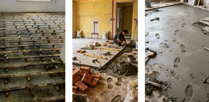 是蹲在滿是水泥灰的工地里,等上十幾天才能干透的傳統(tǒng)自流平?還是勉強(qiáng)用著兩三年就發(fā)霉腐爛的木龍骨地面,眼睜睜看著地板變形、走路吱呀作響?