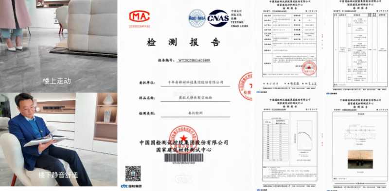 深夜回家不敢穿高跟鞋走動(dòng),孩子跑跳時(shí)總要提心吊膽——這是很多高層住戶的日常。千年舟靜承架空地面通過多層結(jié)構(gòu)的聲學(xué)優(yōu)化,實(shí)現(xiàn)了58dB的高隔聲效果。我們?cè)谡箯d上下層模擬實(shí)驗(yàn)中發(fā)現(xiàn):當(dāng)上層穿著高跟鞋走動(dòng)、拖拽椅子時(shí),下層幾乎聽不到明顯聲響。