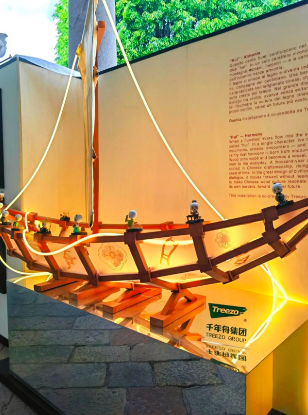 裝置亮相也引發了國際觀眾廣泛熱議,有建筑設計師表示,榫卯結構的靈動與原木的溫潤,打破了對東方木作的固有認知,將傳統技藝轉化為可感知的現代美學,極具感染力,千年舟讓中國木文化有了更鮮活的國際表達,清晰的傳遞了東方人居哲學。