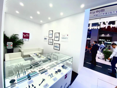 智造音符,在利元亨的展臺中跳動、流淌,為“演奏”出更動人的樂章。弧形、流線性樂譜將展品與空間有機結合,使整個空間流暢、靈動且具有張力。