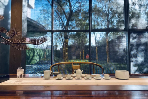 山水疊石、綠樹掩映,樂音浩渺,琴瑟和鳴,琴藝師傾奏一曲古風(fēng)翩翩,給人一種高山流水、海闊天空的意境。習(xí)書作畫,揮毫潑墨,筆畫扇面,將中交·泰合郡的國韻風(fēng)雅展現(xiàn)的淋漓盡致,還有各色中式小食,演繹古代雅士生活場景的當(dāng)代復(fù)刻,東方審美情趣的廊坊歸位。中交·泰合郡示范區(qū)所呈現(xiàn)出的是源起千年的純粹中式藝術(shù)之美。