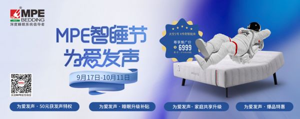 有溫度,亦有力度。9月17日-10月11日,“MPE智睡節·為愛發聲”全國門店聯動大促來襲,這是一場鉅惠聯動,也是一次愛的發聲,全民升級智能床,用誠意為愛助力!用智能科技的力量,傳遞愛的溫度!