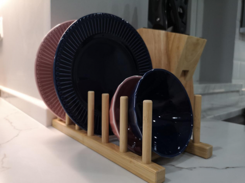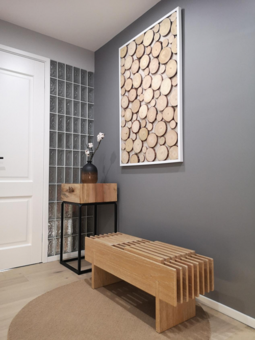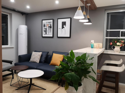 色彩在空間中是可以流動(dòng)的,它們相互呼應(yīng),相互補(bǔ)充。亭頤的這次老房改造對色彩的把控側(cè)重于柔性美感,這就意味著在裝飾材料的材質(zhì)、色彩、圖案、紋理的選擇上需要著重選擇。比如,錫灰色大面積使用作為背景色,凸現(xiàn)出簡約平和的現(xiàn)代感。胡桃木的茶幾和單柜,小巧的木質(zhì)置物架和整齊劃一的楓葉色格子櫥柜,用流動(dòng)的色彩延續(xù)設(shè)計(jì)風(fēng)格。玄關(guān)處幾何疊加設(shè)計(jì)感的木凳用色清透干凈,墻上的年輪壁畫象征著時(shí)間與自然,柔和的曲線之美配以木質(zhì)專有的色澤,既有藝術(shù)感又不失親和力。