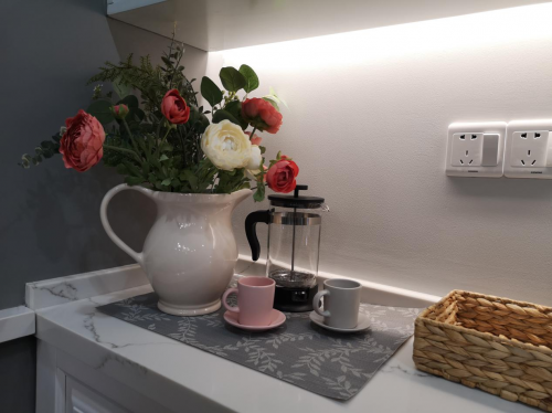 不能忽略的是主人頗具文藝柔美的女性特質(zhì)。除了熱鬧的陽臺(tái)花園,亭頤在多處放置了進(jìn)口仿真花,飽滿而艷麗,給人色彩的跳躍感。即使是冷冰冰的五金,亭頤也全部都選擇圓潤的曲線設(shè)計(jì),甚至淋浴噴頭的設(shè)計(jì)也是精心處理之后的選擇。仔仔細(xì)細(xì)揣摩之后的設(shè)計(jì)才會(huì)有令人滿意的最終呈現(xiàn),才能讓主人覺得這生活的溫度啊,剛剛好。