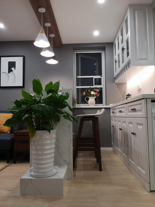 生活的溫度在于陽光、植物和熱愛。在這個(gè)老房改造的案例中,亭頤保留了原有的窗戶,讓整件屋子如往常一樣陽光充沛。陽光所到之處一定會(huì)有花與綠植,室內(nèi)花園的設(shè)計(jì)靈感隨之而來。陽臺(tái)是整間屋子最靠近太陽的地方,這里需要生機(jī)盎然,需要活潑而鮮艷的點(diǎn)綴。每天看到光影在葉子和花朵間緩慢移動(dòng),風(fēng)從身邊自在穿行,自然的細(xì)微力量總能讓內(nèi)心變得清明澄凈。居家不僅僅是一蔬一飯,更多的是與周圍的事物相處,亭頤在乎的是每一處日常的感官呈現(xiàn),而空間的溫度在于找準(zhǔn)設(shè)計(jì)的“開關(guān)”,多一點(diǎn)會(huì)心的靜物就會(huì)顯得溫暖而明亮。