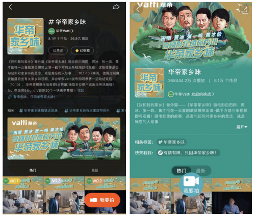 《華帝家鄉(xiāng)味》是華帝借電影展開更具廣度、深度的溫情新顛覆——聚集明星、達人等資源深度演繹家鄉(xiāng)味道,且覆蓋更廣泛的中國范圍。在這次IP聯(lián)合活動與系列傳播活動中,華帝以“家鄉(xiāng)味”為載體,從明星出演的品牌微電影到KOL、KOC參與的快手同名魔表挑戰(zhàn)賽,使用#華帝家鄉(xiāng)味#話題標簽層層滲透,不僅想通過智能套系廚電表達能烹飪出一道道香濃家鄉(xiāng)菜的專業(yè),更是融合在人與人之間的家鄉(xiāng)味道與情懷。