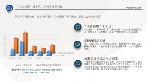 同時,這份《中國校服產(chǎn)業(yè)白皮書》還將2018年沸沸揚揚的溫州某學校的“天價校服”事件中的校服價格進行了分析,結果發(fā)現(xiàn),該事件中的校服價格,其實是遠低于市場上知名的快銷服裝品牌的。