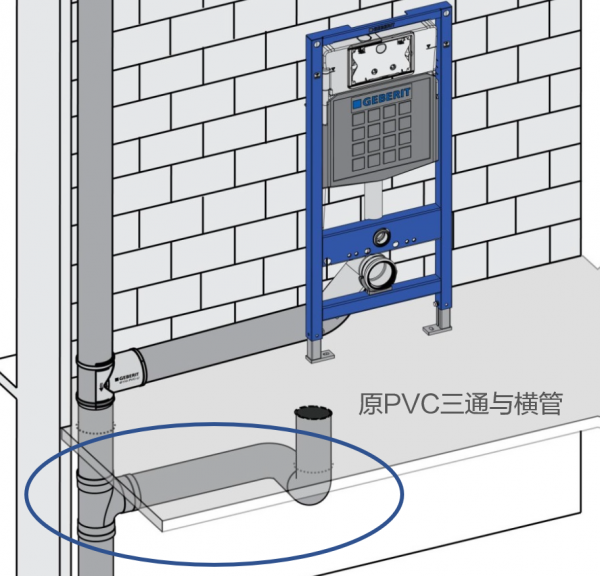 如果主管道是PVC或者HDPE的材質,這種情況的改造要點為四個字:廢舊立新。摒棄樓板下的三通和支管,通過三通將隔層排水變成同層排水。