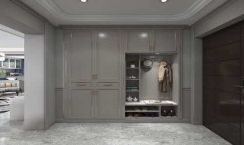 首先,入戶處玄關(guān)的開(kāi)放空間設(shè)計(jì)了多層儲(chǔ)物格,同時(shí)大面積的掩門(mén)設(shè)計(jì)擴(kuò)大收納空間,也彰顯大氣整潔的家裝風(fēng)格。其次,客廳采用極簡(jiǎn)背景墻+全功能電視柜,沙發(fā)背景避免了古典歐式的繁冗,富有活力生機(jī),同時(shí)又不失精致典雅。整體空間的高雅灰與金色搭配獨(dú)具審美與品味。隨后,餐廳整體采用上下分柜與高柜相結(jié)合設(shè)計(jì),寬大的操作臺(tái)面可以擺放年輕人喜愛(ài)的各種廚房小家電。同時(shí)科學(xué)分區(qū),收納空間充足,動(dòng)線設(shè)計(jì)合理,可有效減少下廚時(shí)來(lái)回穿梭。此外,客廳與陽(yáng)臺(tái)之間采用開(kāi)放式設(shè)計(jì),打造年輕人夢(mèng)寐以求的精致休閑區(qū),下方空間也可以靈活收納物品,滿足用電需求。