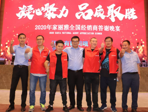 “服務客戶,用戶至上”這是家麗雅一貫堅持的經營理念,為此家麗雅公司打造了一個充滿活力、專業高效的服務型團隊。家麗雅的成功離不開所有家麗雅經銷商和家麗雅人的努力付出與支持,在答謝晚宴中,家麗雅公司團隊向與會全國家麗雅經銷商表達了忠心的感謝。未來的征途大道,家麗雅必將秉持初心,與全國經銷商披甲同行!奮斗不止,追夢不息!