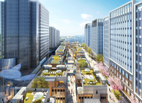 萬科·天空之城采取了垂直業(yè)態(tài)布局,融合了住宅、商業(yè)、辦公、體育公園、幼兒園等多重業(yè)態(tài),達到了土地的高效利用,滿足了辦公、商業(yè)、文化、教育、居住、休閑等不同需求。在設(shè)計規(guī)劃上,整體項目路網(wǎng)規(guī)劃復雜、多元,呈現(xiàn)蛛網(wǎng)式交錯排布,地下結(jié)構(gòu)規(guī)劃了四層以上立體交通。產(chǎn)品設(shè)計整體抬高8~18米,實現(xiàn)物理空間延伸,項目的獨立性也更強。上海萬科·天空之城的推出,在市場引起巨大反響,可見上海市場對TOD項目的認可。