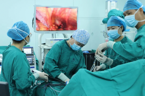 張女士被診斷為“雙側卵巢低級別漿液性腺癌”,需行“卵巢癌腫瘤細胞減滅術”,但其年紀較輕,未婚未育,能否保留以及如何保留生育功能是制定手術方式的關鍵;在充分的準備下,何主任帶領婦科專家,與手術室麻醉科的醫生護士共同努力,順利開展“腹腔鏡下雙側附件切除術+腫瘤細胞減滅術+大網膜切除術+盆腔淋巴結清掃術”,并保留子宮。