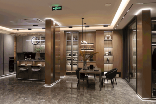 ▲新標(biāo)家居全新展廳同時(shí),全新的時(shí)尚展廳隆重亮相,通過(guò)各種沉浸式空間氛圍展示,讓新標(biāo)經(jīng)銷商家人們真切感受到全新高端生活體驗(yàn)。