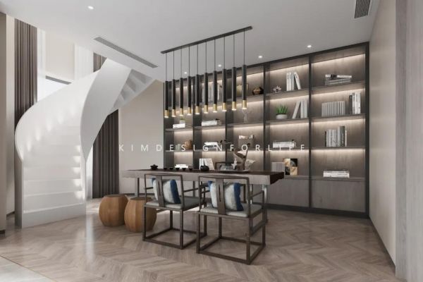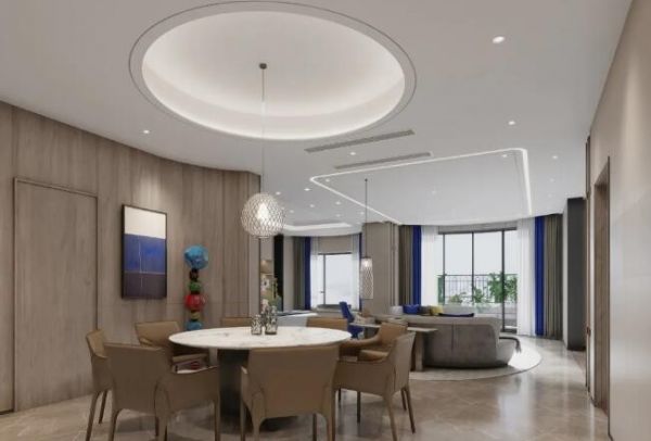 濱江壹號空中別墅項目位于長江江畔的南京濱江壹號的百米高空的四十三、四十四層,除滿足基本功能的需求外,在空間設計上輕裝修重裝飾,使用暖色系的顏色可以表現溫馨。