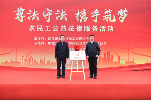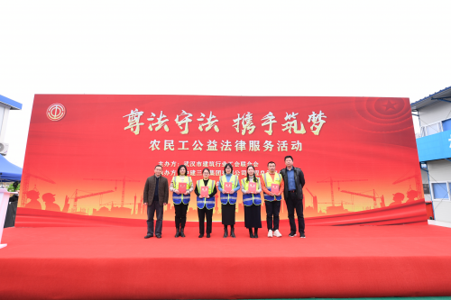 在消費者權益日來臨之際,3月12日,由武漢市建筑行業工會聯合會主辦、中建三局總承包公司承辦的“尊法守法?攜手筑夢”農民工公益法律服務活動在項目工地舉行,為現場100余名職工、工友普及《保障農民工工資支付條例》和《民法典》涉及勞動關系的法律知識,引導廣大職工、農民工友增強法治意識。現場為“農民工公益法律服務站”揭牌,并向中建三局總承包公司5名項目工會工作者頒發特邀調解員聘書。