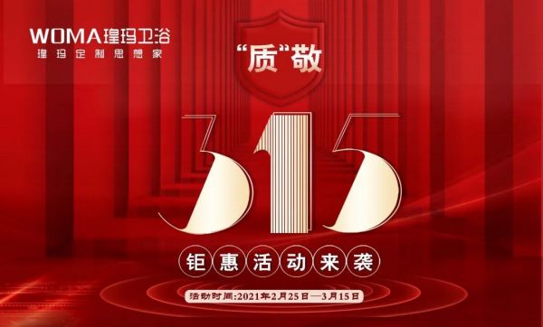 值此315品質(zhì)消費(fèi)之際,瑝瑪線上線下全國門店誠心鉅獻(xiàn),推出“質(zhì)”敬315”活動,全國鉅惠,此舉既證明了瑝瑪衛(wèi)浴的企業(yè)實(shí)力,也表明了瑝瑪對產(chǎn)品質(zhì)量的信心,更是瑝瑪對所有消費(fèi)者負(fù)責(zé)任的態(tài)度!