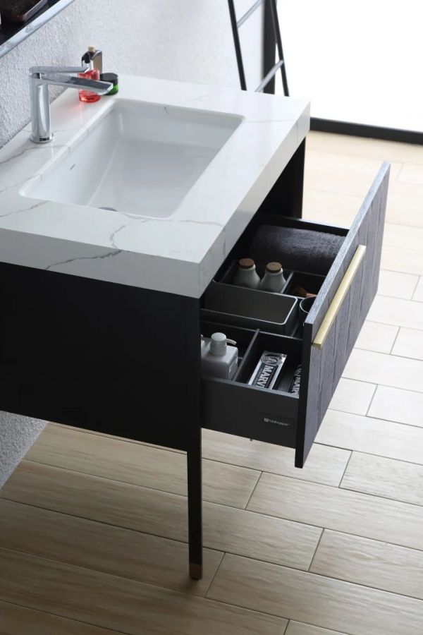 除卻經(jīng)典的卯榫結(jié)構(gòu),還添加全新技術(shù)結(jié)構(gòu),例如自體導(dǎo)流式結(jié)構(gòu)盥洗模式、不銹鋼條嵌入結(jié)構(gòu),還有巖板45°切割等等,這些技術(shù)在國內(nèi)都是少有且具有較高的技術(shù)要求。成品少、報廢率高,具有一定技術(shù)含量。