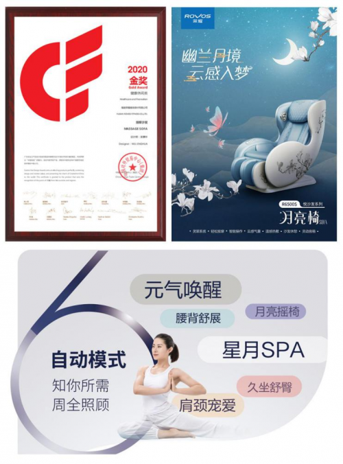 R6500S月亮椅SOFA,以精致小巧的外形,符合人體工程學設計,智能的按摩程序與手法吸引不少人的關注與喜愛,外側木蘭花的設計更是錦上添花,優(yōu)雅高潔,完美融合家居單人小沙發(fā)與按摩椅的創(chuàng)新融合,而且性價比極高,滿足年輕一族的按摩享受和娛樂休息需求,為生活“減負”。月亮椅獲得過“2020年廣交會出口產(chǎn)品設計金獎”殊榮,堅持創(chuàng)新,專注產(chǎn)品設計與科技研發(fā),才有了ROVOS如今的成就和美譽。