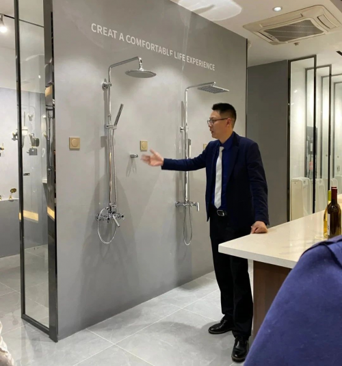 胡總裁親自帶領(lǐng)郭瑞先生參觀了高斯衛(wèi)浴的展廳、五金加工車間、以及浴室柜生產(chǎn)車間等,深入介紹了高斯衛(wèi)浴的重要生產(chǎn)鏈。會(huì)后,郭瑞先生表示獲益良多、不枉此行。