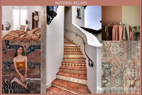 基里姆毯的紋樣在壁紙中屢見不鮮, 由緊密的經線和緯線編織而成,形成各種各樣的幾何圖型。紋樣多為游牧民族用來庇佑家人財產、躲避災禍疾病的護身符號。每一張都是由匠人純手工編織而成,選用其做家庭裝飾彰顯出主人的非凡品味。