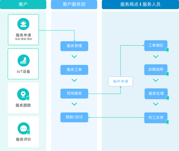 作為面向企業(yè)用戶提供的數(shù)字化客戶服務(wù)管理運(yùn)營(yíng)平臺(tái),售后寶提供場(chǎng)景化的客戶服務(wù)運(yùn)營(yíng)管理SaaS服務(wù),幫助企業(yè)連接客戶,管理服務(wù)合同,組織產(chǎn)品、備件、服務(wù)網(wǎng)絡(luò),優(yōu)化任務(wù)分配,協(xié)助技術(shù)人員完成安裝、維護(hù),更換和檢測(cè)等售后服務(wù),打通預(yù)防、檢測(cè)、防御、響應(yīng)、派工、回訪的全流程服務(wù)鏈。