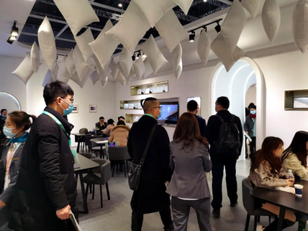 本次蘭帛睡眠家居展會的另一大明星產品——太空艙智能深睡臥室,同樣也受到了兩位會長的高度肯定,一鍵智能調控,實現臥室溫度、濕度,空氣的最佳的睡眠環境;定時開啟關閉窗簾,可自動控制新風系統換氣;智能音箱語音互動,AI人工智能控制,集成個性化定制的小貝伴眠背景音源,各種智能化調控,僅需要通過蘭帛的小程序一鍵解決。據蘭帛睡眠家居總經理胡亞軍先生介紹,蘭帛睡眠家居的“太空艙智能沉睡臥室”將是蘭帛家居線下門店的標準配備,這也將是蘭帛睡眠家居終端門店和傳統家紡門店的不同之處,親自體驗過蘭帛的一站式睡眠解決方案,消費者會明白怎樣更好的解決自己的睡眠問題。